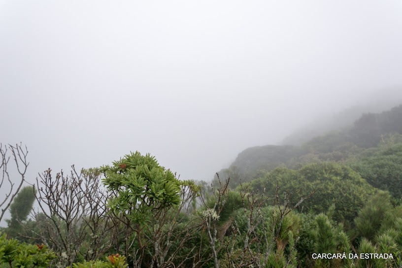 Não me deixei abater pelo cenário nebuloso que encontrei ao deixar a barraca ao amanhecer. Tudo permanecia cinza, mas felizmente não chovia. Embora a intenção fosse registrar a Baía de Antonina e boa parte do litoral norte do Paraná do ponto mais privilegiado do Estado, a impossibilidade me lembrou que os desígnios da natureza são alheios às nossas vontades. Foi uma grande honra estar ali por alguns momentos. Sem a luz direta do sol e sem esperanças de que o tempo se abrisse, levantamos acampamento, juntamos nossas tralhas e nos recolocamos no caminho de volta à fazenda Pico Paraná. Enfrentamos todos os perigos novamente, avançando mais vagarosamente do que na ida, visto que Luana, em um dos abissais barrancos em meio à mata atlântica, torcera o joelho e reclamava de lancinante dor. O ponto alto do regresso, além da sempre deslumbrante – e parcial – vista da Serra de Ibitiraquire (Serra Verde, em tupi), foi o reencontro com Erlon Junior, motociclista de São Paulo e companheiro de Pantanal Sul (link da viagem) que também caminhava por aquelas bandas. Após 7 horas de caminhada reavíamos nossas motos na fazenda e, sobre elas, praticamente exauridos de nossas forças, retornamos a BR-116, onde pernoitamos à beira da estrada. Certamente esse é um local ao qual regressarei em breve, já que existem, além do Pico Paraná, outros cumes acessíveis por trilhas na mesma serra. As possibilidades ali são muitas.