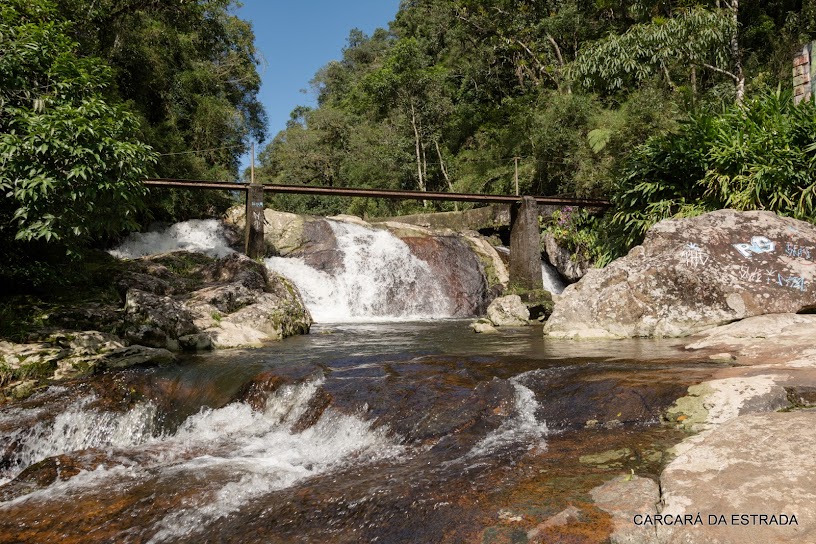 Trilhos de ferro passam a poucos metros da escadaria de acesso à porta principal da Casa do Ipiranga. Embora o mato esteja alto, não é difícil visualizá-la. Hoje essa linha não vai até Paranaguá, como antigamente, mas apenas até Morretes. As passagens são compradas em Curitiba e o trem recebe a chancela de “turístico”, o que incrementa seu preço e diminui a acessibilidade de pessoas de baixa renda. É uma pena que tenham sucateado praticamente todas as ferrovias do Brasil e, algumas das poucas que restam, tenham esse fim elitista. Com todas essas instrospecções, mas sem me esquecer de aproveitar os últimos metros do Caminho do Itupava, descemos para o sul beiradeando os trilhos até uma outra escadaria que dá acesso ao rio Ipiranga, o qual já havíamos atravessado, sobre uma ponte de madeira, poucos metros antes da Casa do Ipiranga. Nessa parte de seu curso funcionou uma pequena usina hidrelétrica que tinha justamente a única função de prover energia à morada do engenheiro-chefe. Hoje se encontra desativada, mas algumas peças de sua estrutura ainda resistem ao tempo e à umidade, como uma roda d'água e uma estreita ponte de ferro sobre o rio. Duas portentosas cachoeiras despejam muita água e formam grandes poços com o cumprimento das altas altitudes da Serra do Mar. Após elas o rio segue manso em seu leito pedregoso, revelando ao fundo o topo de um dos montes da Serra da Graciosa. Essa foi nossa última visão do Caminho do Itupava, pois chegáramos à metade de seu percurso total. Voltamos, estafados, para a base do IASP, em Borda do Campo, totalizando aproximadamente 15km de caminhada com grandes desníveis. Como informação adicional, friso que o caminho completo tem 17km de extensão.